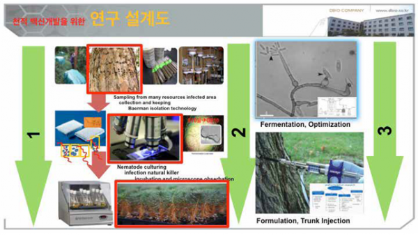 2) 재선충 연구 특별 지역을 설정하여 (제주도 애월, 경기도 광주, 경북 포항 등), 감염 후의 고사 기작, 재선충 생태와 확산의 연구, 예방 백신의 개발. 효능 시험과 평가 등을 적극 지원하며, 미비된 법률을 개정하고