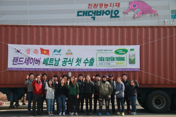 당사는 그 해 11월 베트남 현지 유기농약총판업체인 '화랑'과 3년간 300억 판매와 마켓팅 협약을 맺은 뒤 다음 달이 12월에 70톤의 수출주문을 받아 이번에 첫 물량을 공식 수출하게 된것이다. 당사는 2018년도에 700톤을 수출할 계획이다.